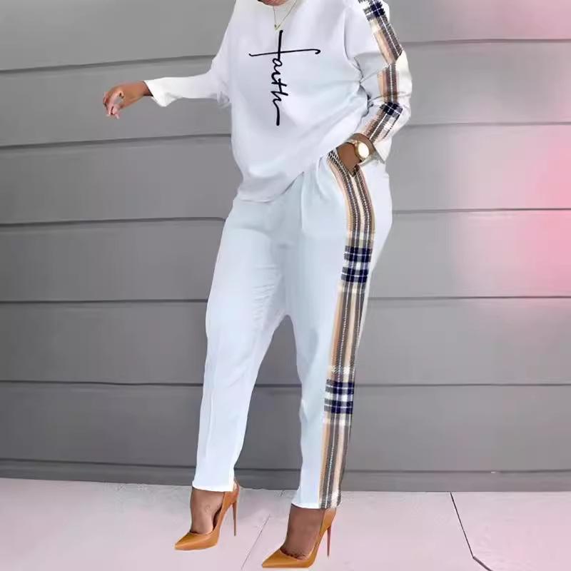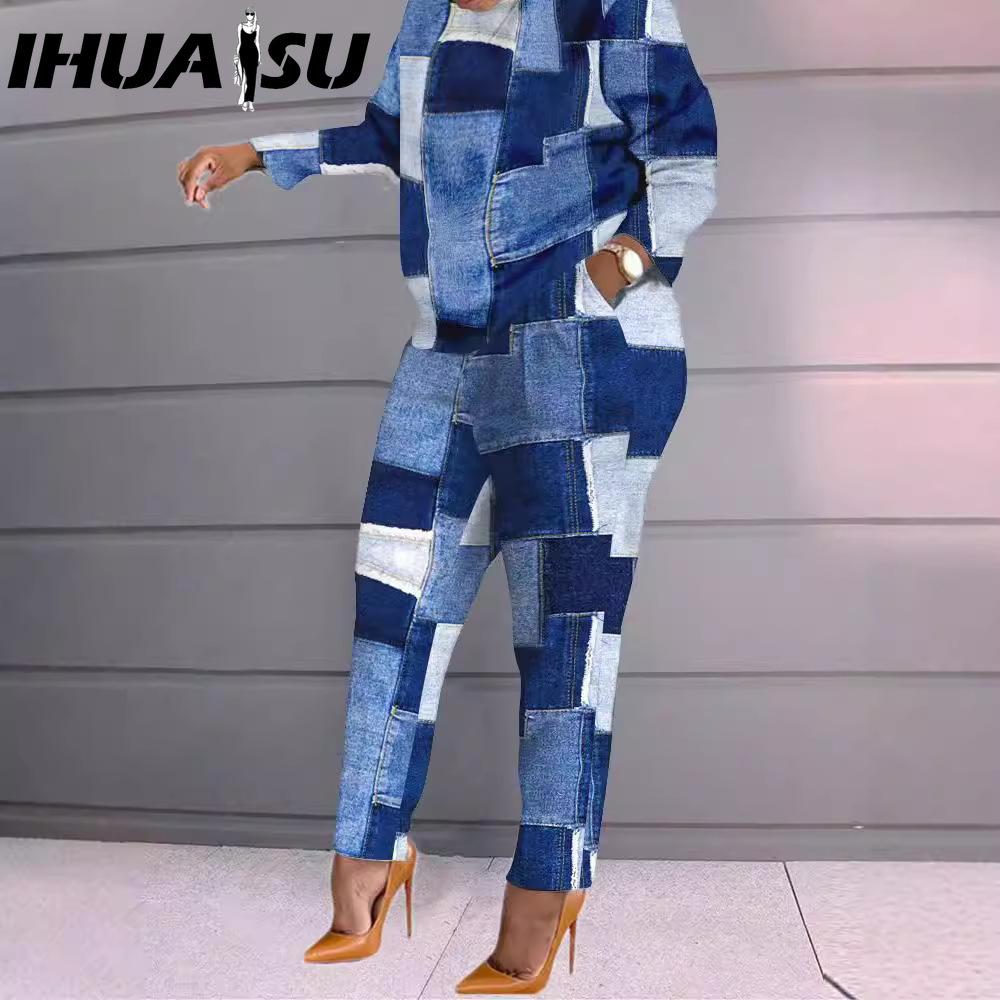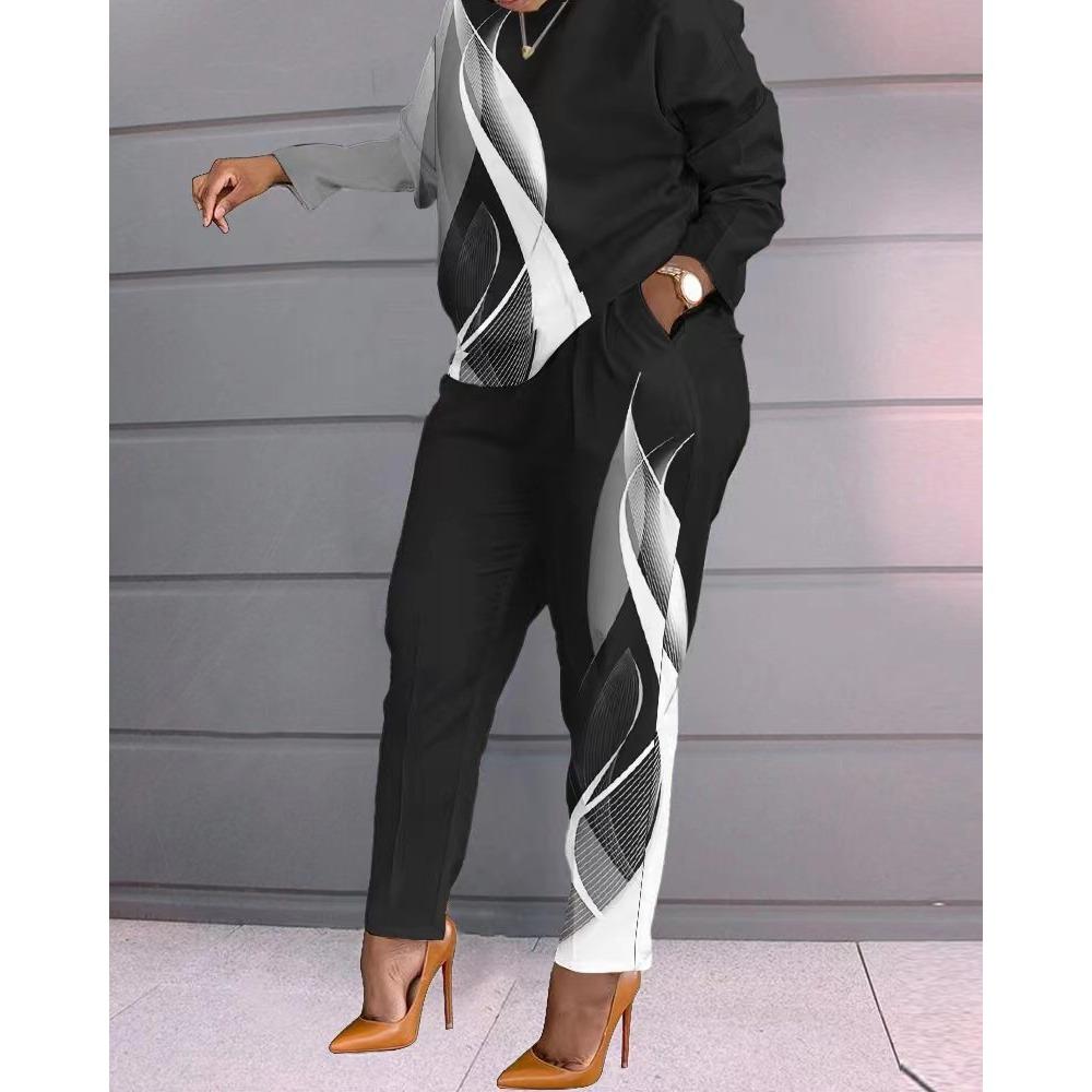 IHUASU Модный осенне-зимний женский повседневный и удобный комплект с длинными рукавами и длинными брюками с принтом