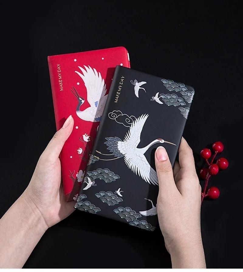 Кавайная повестка дня 2024 года, еженедельный планировщик, блокнот, органайзер, дневник и журнал формата А6, ежемесячный справочник школы путешествий в китайском стиле «Журавль»