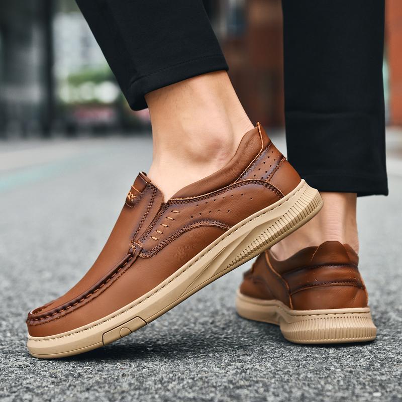 Мужские повседневные кожаные туфли для весны и лета, модные туфли для активного отдыха на мягкой подошве, удобные деловые туфли из кожи, туфли для вождения