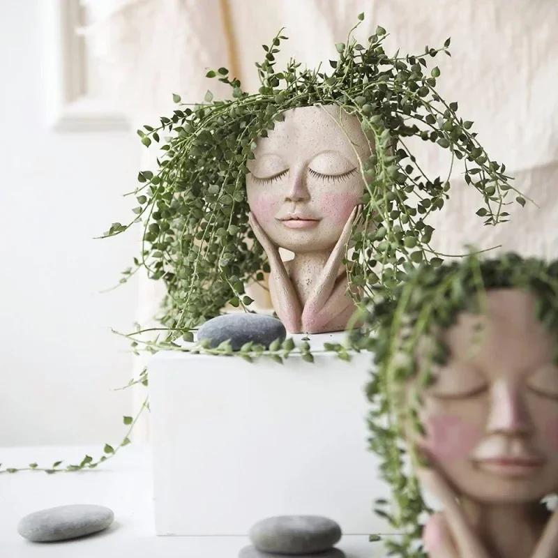 Креативное лицо Цветочный горшок Голова Кашпо Горшок Суккулент Кашпо Искусство Статуя Скульптура Горшечные Декоративные Украшения Ваза