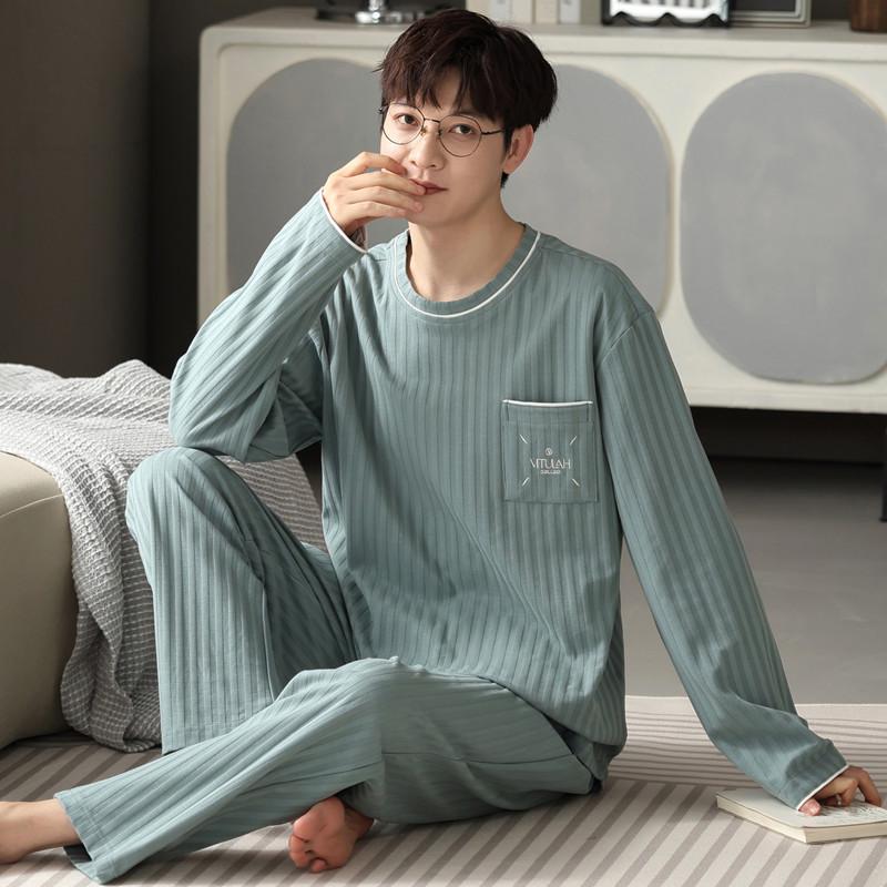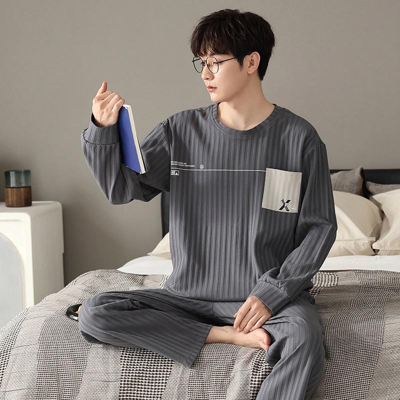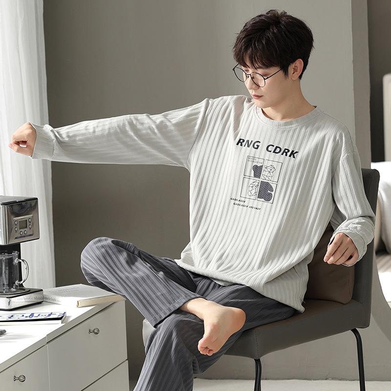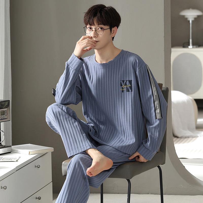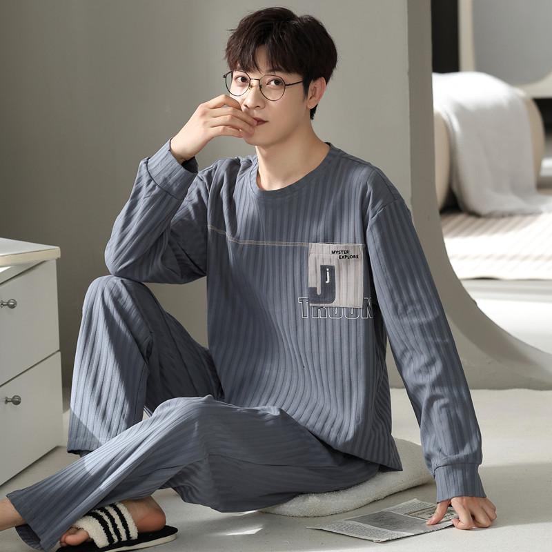 Комплект из 2 предметов, хлопковая мужская пижама, весенняя тонкая дышащая домашняя одежда, ночная рубашка для мальчиков, топ и штаны для сна, пижама Hombre