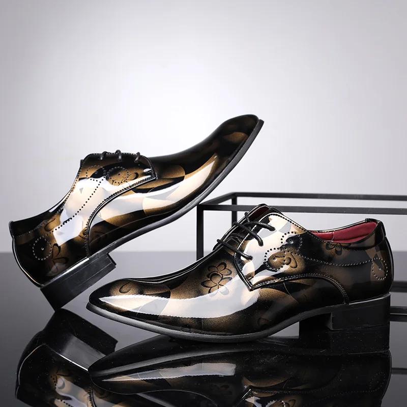 Повседневная и Модная Мужская Обувь Большого Размера из Великобритании Amazon Обувь для Внешней Торговли Блестящая Повседневная Кожаная Обувь Обувь на Шнуровке