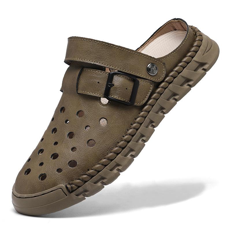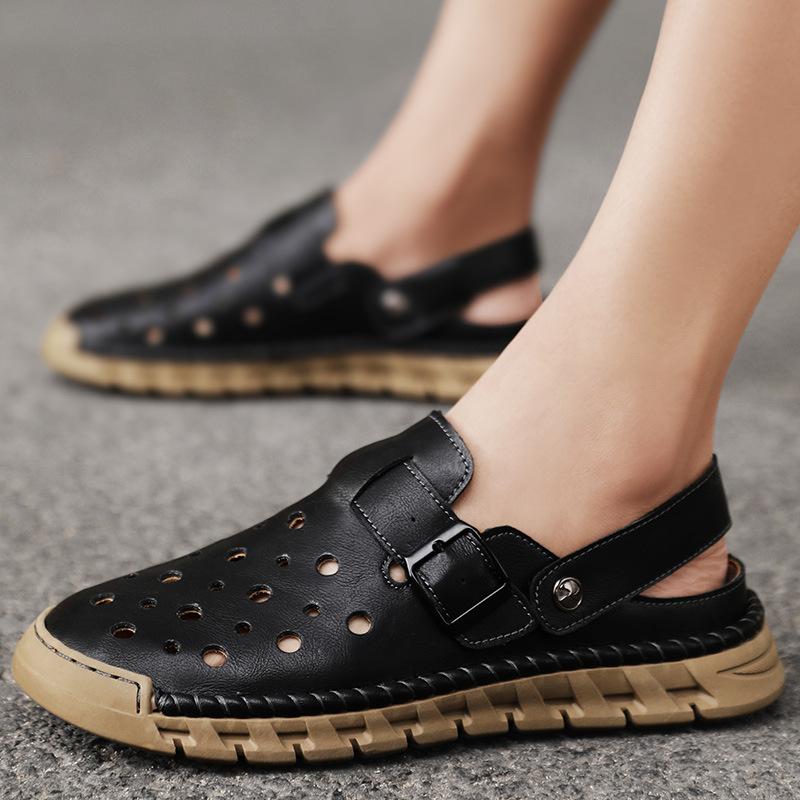 Мужские сандалии для отдыха на природе, кожаные сандалии с закрытым носком, спортивные регулируемые мокасины с ремешком, пляжная обувь для отдыха на природе, дышащая, нескользящая