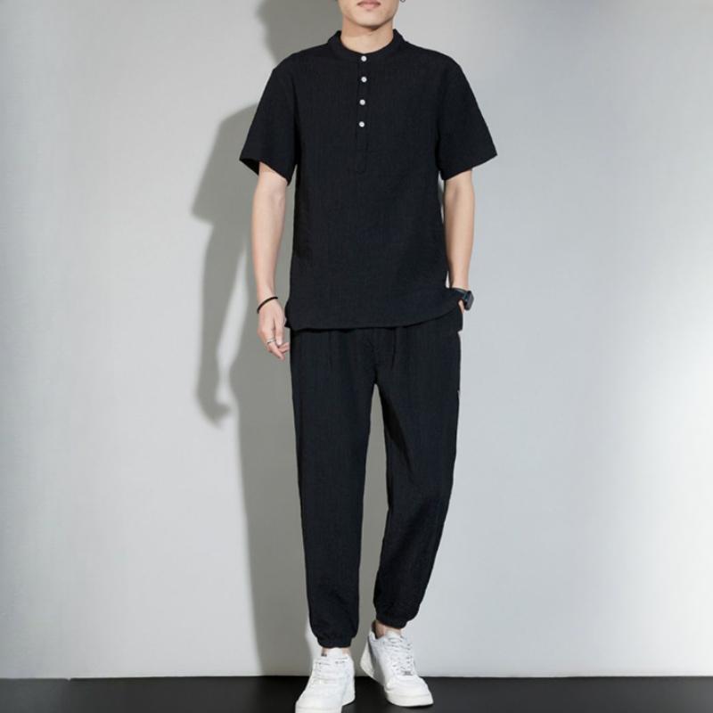 Льняной костюм с короткими рукавами, мужской летний тонкий шелковый свободный дышащий повседневный костюм из двух частей — купить товар онлайн с бесплатной доставкой до всему миру!