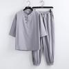 Летний льняной костюм с короткими рукавами в китайском стиле, мужской костюм эпохи Тан, шаровары из хлопка и льна для мирян