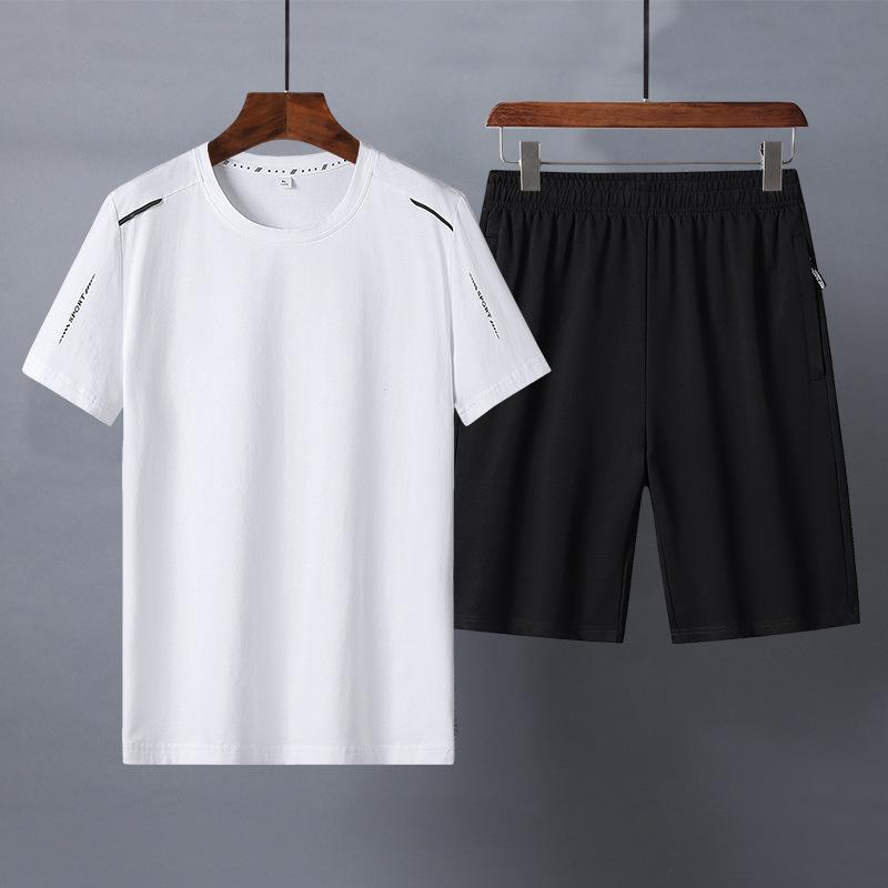 Летний мужской повседневный костюм с короткими рукавами, дышащий, из чистого хлопка, для бега, спортивная одежда больших размеров, комплект из двух предметов — купить товар онлайн с бесплатной доставкой до всему миру!