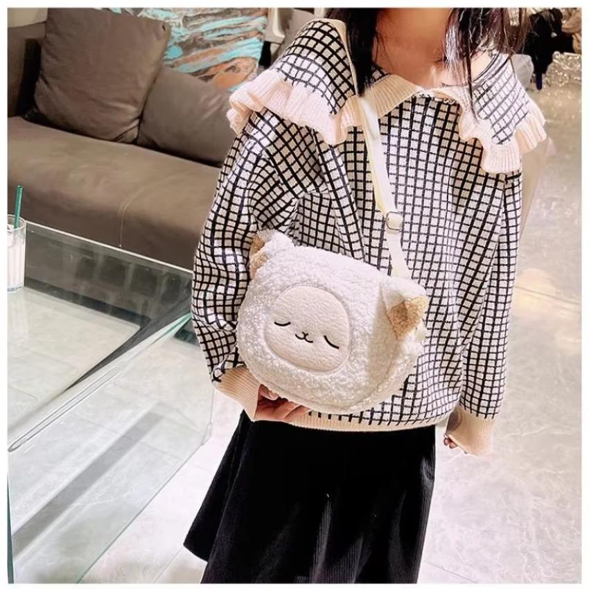 1 шт. мультяшная плюшевая маленькая сумка маленький медведь овечка мобильный кошелек женская одно плечо милая круглая сумка на молнии цепочка сумка