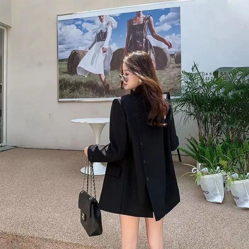 Блейзер с разрезом, пальто, женская повседневная мода, свободные корейские куртки, уличная одежда, шикарный длинный рукав