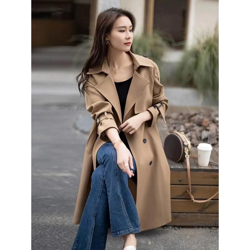 Ветровка выше колена женская весна и осень новый стиль двубортное пальто средней длины свободного покроя корейский стиль