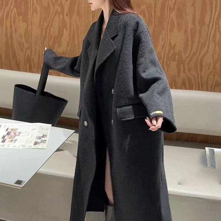 Осенне-зимнее высококачественное двухстороннее кашемировое пальто, женское новое шерстяное пальто с воротником ручной работы, сшитое вручную
