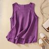 Футболка без рукавов Summer Literature однотонная из хлопка и льна с круглым вырезом для женщин, топ с жилетом