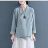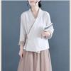 Литературно-художественная рубашка с косым воротником и длинными рукавами, женская хлопковая льняная рубашка в китайском стиле ханьфу