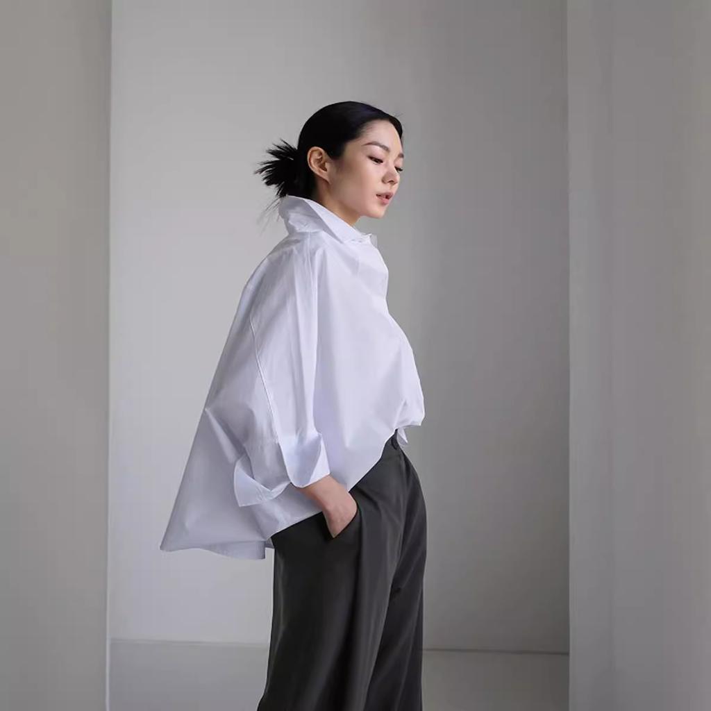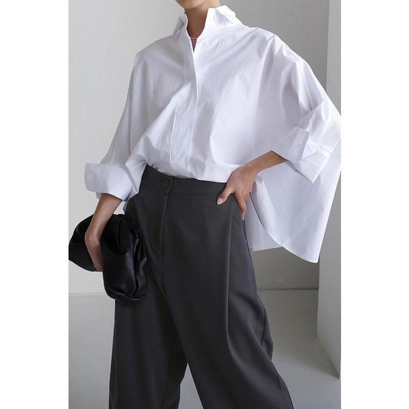 Женская рубашка с длинным рукавом на весну и лето, женская рубашка в корейском стиле свободного покроя большого размера белого цвета с рукавом-накидкой и рукавом «летучая мышь»
