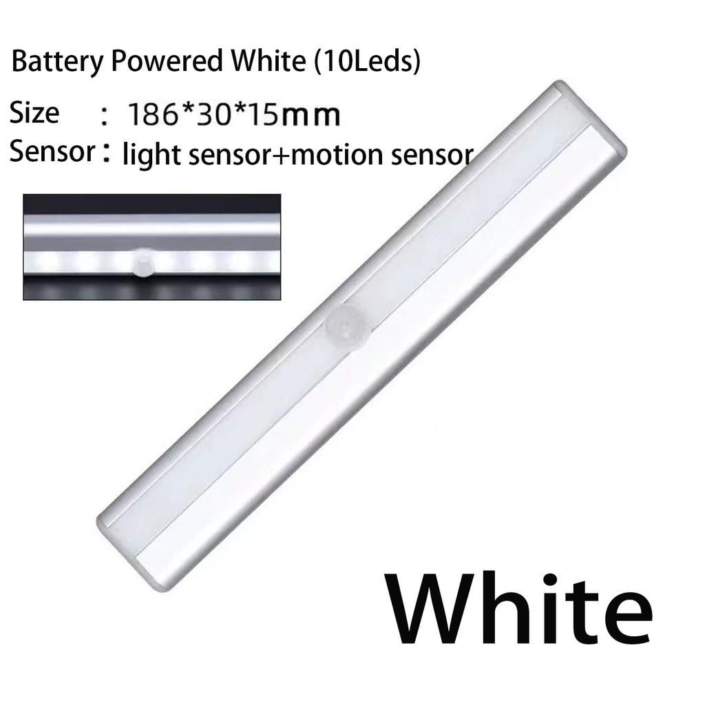 3: Светодиодные датчики движения с питанием от батареек. 6 лампочек работают от 2 батареек ААА, 10 лампочек работают от 4 батареек ААА. (не включено). Не требует зарядки.. Если датчик движения обнаружит достаточную яркость, свет в шкафу не включится, что продлит срок службы батареи за счет низкого энергопотребления.