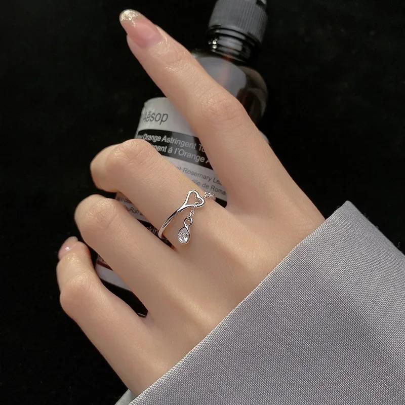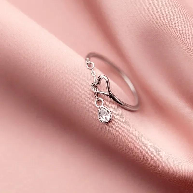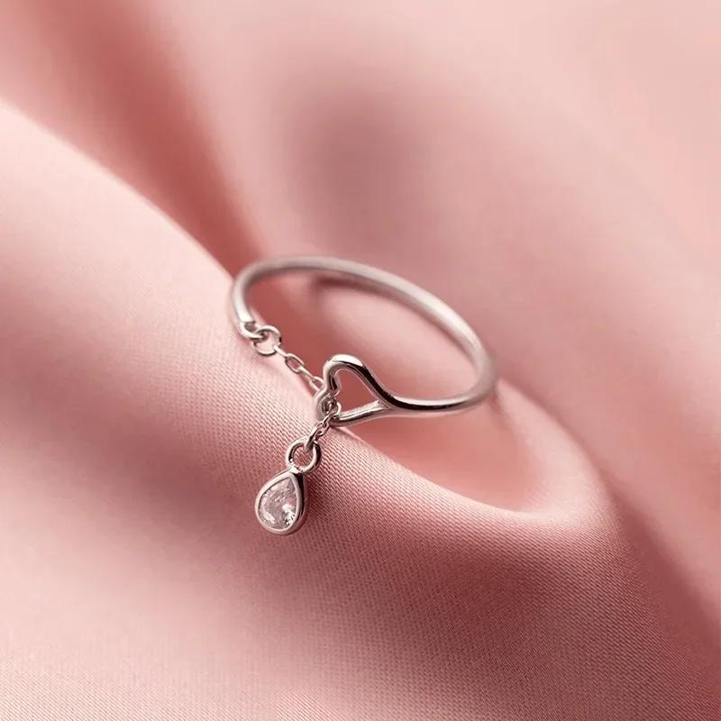 Корейское креативное кольцо женское из нержавеющей стали в форме сердца с бриллиантами открытое кольцо с маленькими каплями воды подарки модная бижутерия