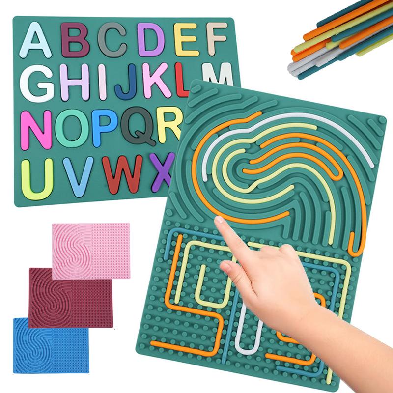 Большая сенсорная доска для активности с английскими буквами, силиконовая игрушка-фиджет для детей, бесшумная, успокаивающая, для детей с тревожностью, синдромом дефицита внимания и гиперактивности, аутизмом, портативная игрушка для путешествий
