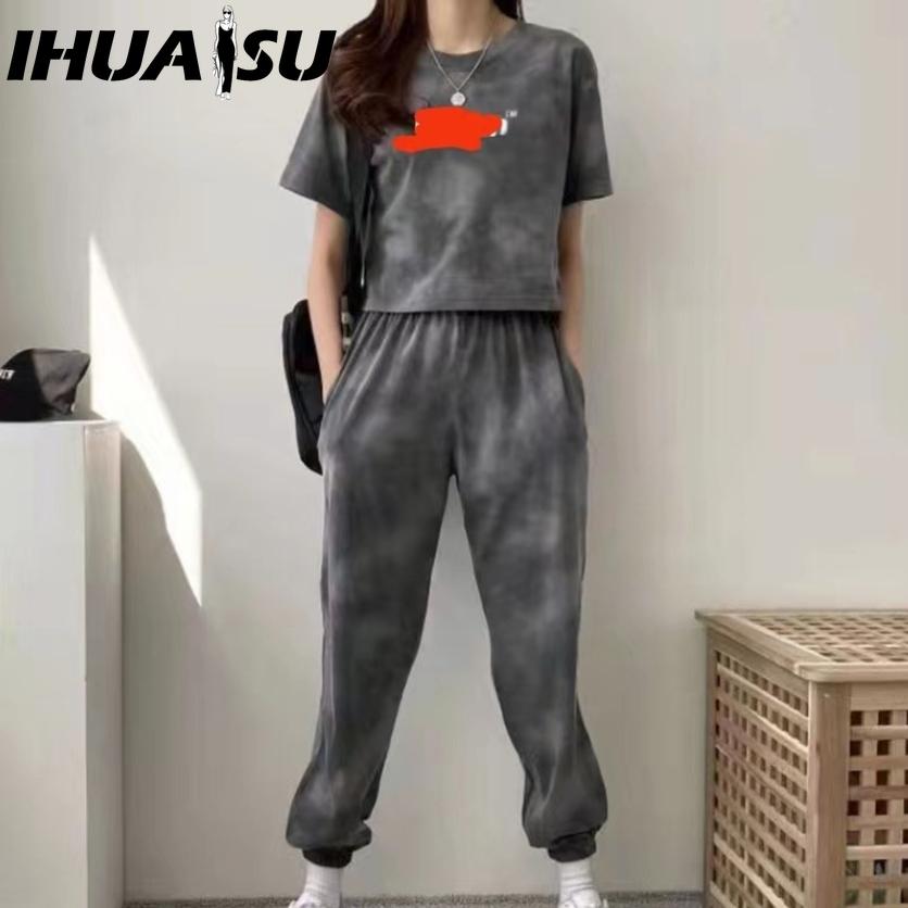 IHUASU Повседневный и модный женский костюм на лето, нетрадиционный летний стиль, комплект из двух предметов спортивной одежды для женщин