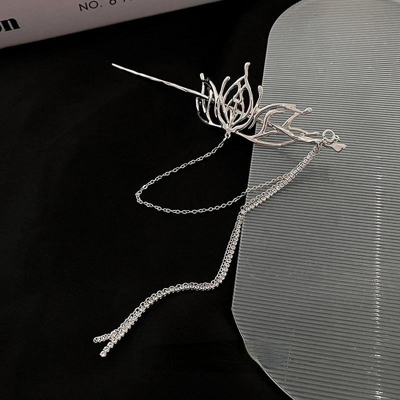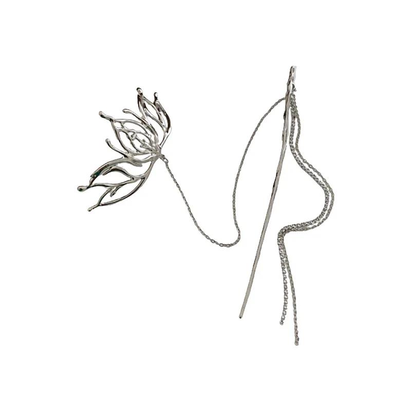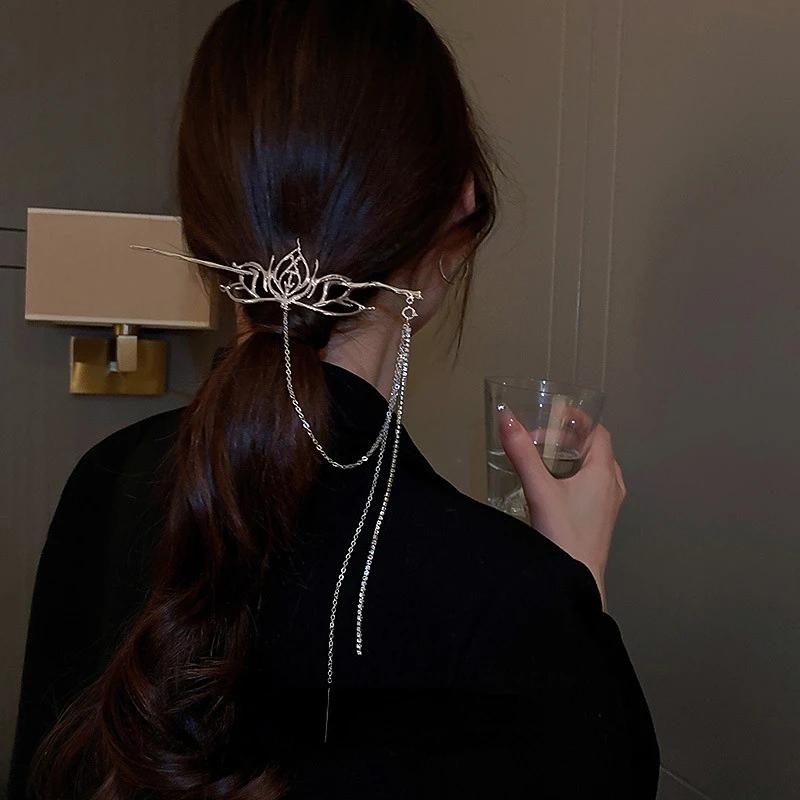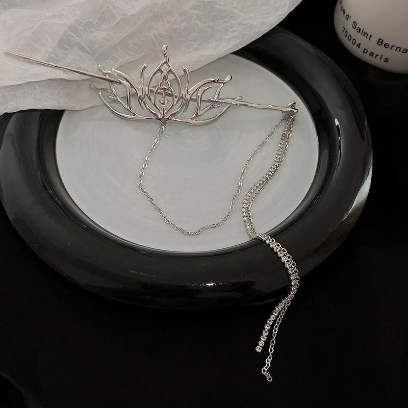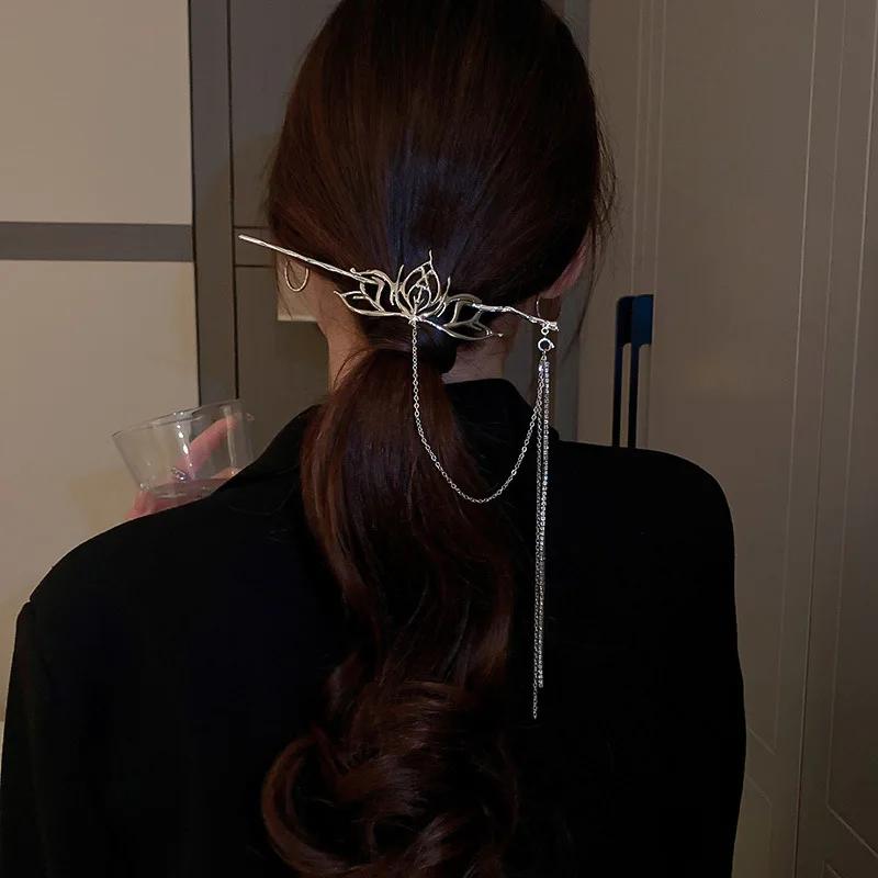 Жидкий металл, серебряная полая заколка с кисточками в форме лотоса, модная заколка для волос в китайском стиле, дизайн холодного ветра, смысловое украшение для волос, женский