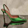 Сексуальные Роскошные Дизайнерские Туфли на Высоком Каблуке из Шелка и Стразов Новые Сандалии Женские Остроносые на Тонком Каблуке Модные Блестящие Свадебные Туфли для Вечеринки Платья