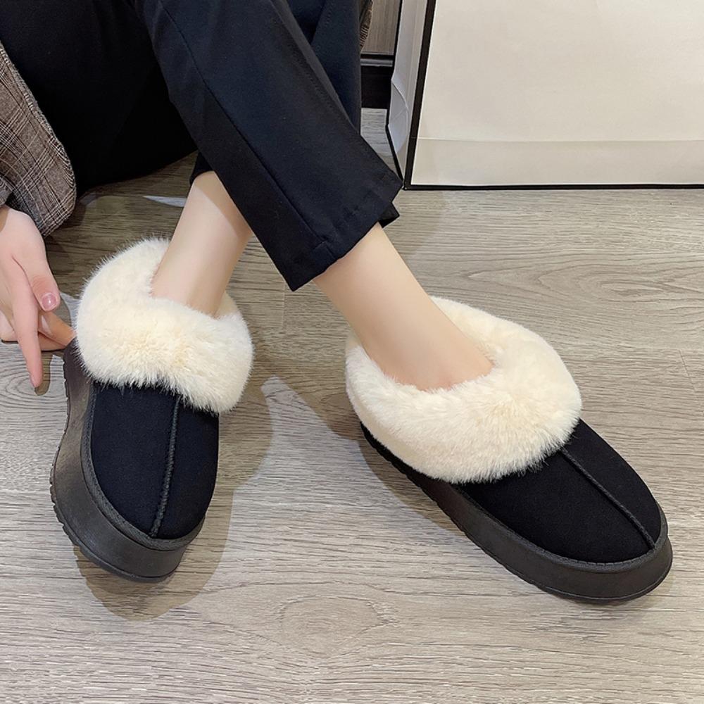 Зимние теплые утолщенные плюшевые хлопковые тапочки на массивной платформе, женские меховые тапочки на плоской подошве, женские 2024, новая пушистая обувь из искусственной замши