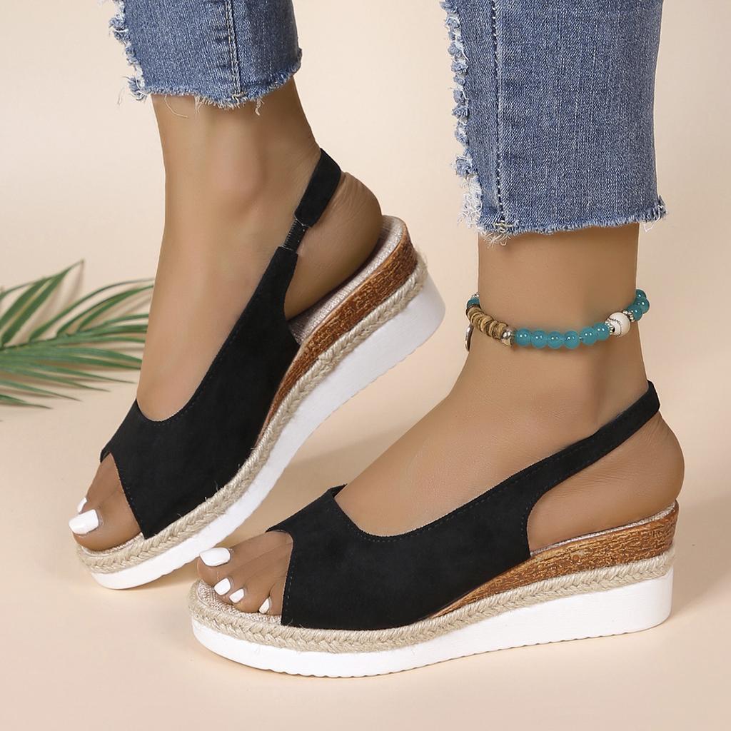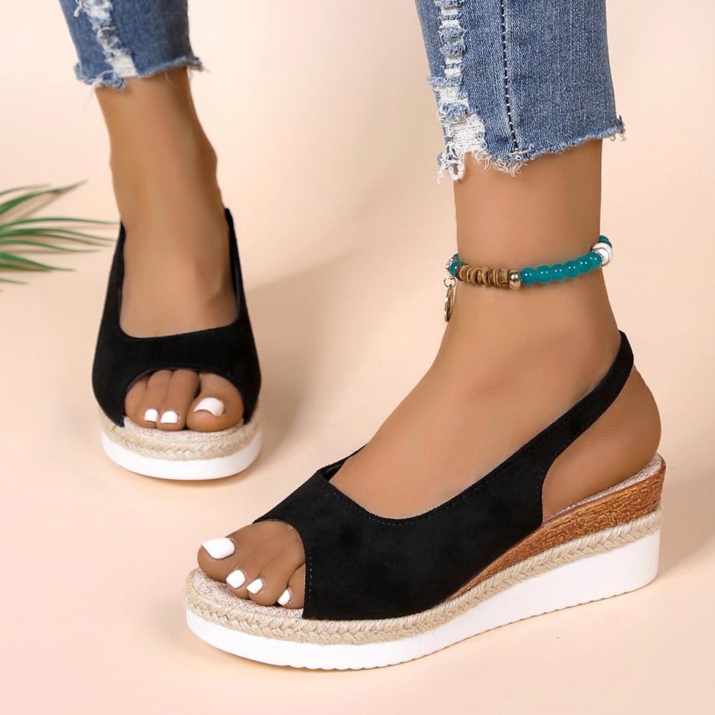 Круглый носок Большие размеры Низкие сандалии Женские замшевые сабо с каблуком Туфли женские 2025 Летние танкетки Удобные сандалии для женщин