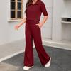 Комплект из 2 предметов. Женские повседневные брюки с короткими рукавами и лацканами, эластичные, широкие. — купить товар онлайн с бесплатной доставкой до всему миру!