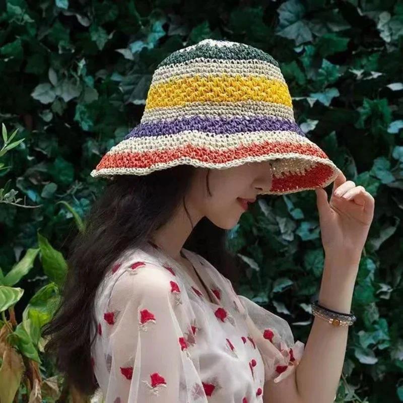 Женская летняя цветная вязаная крючком складная вязаная крючком солнцезащитная туристическая шляпа для отдыха на море пляжная шляпа для рыбака