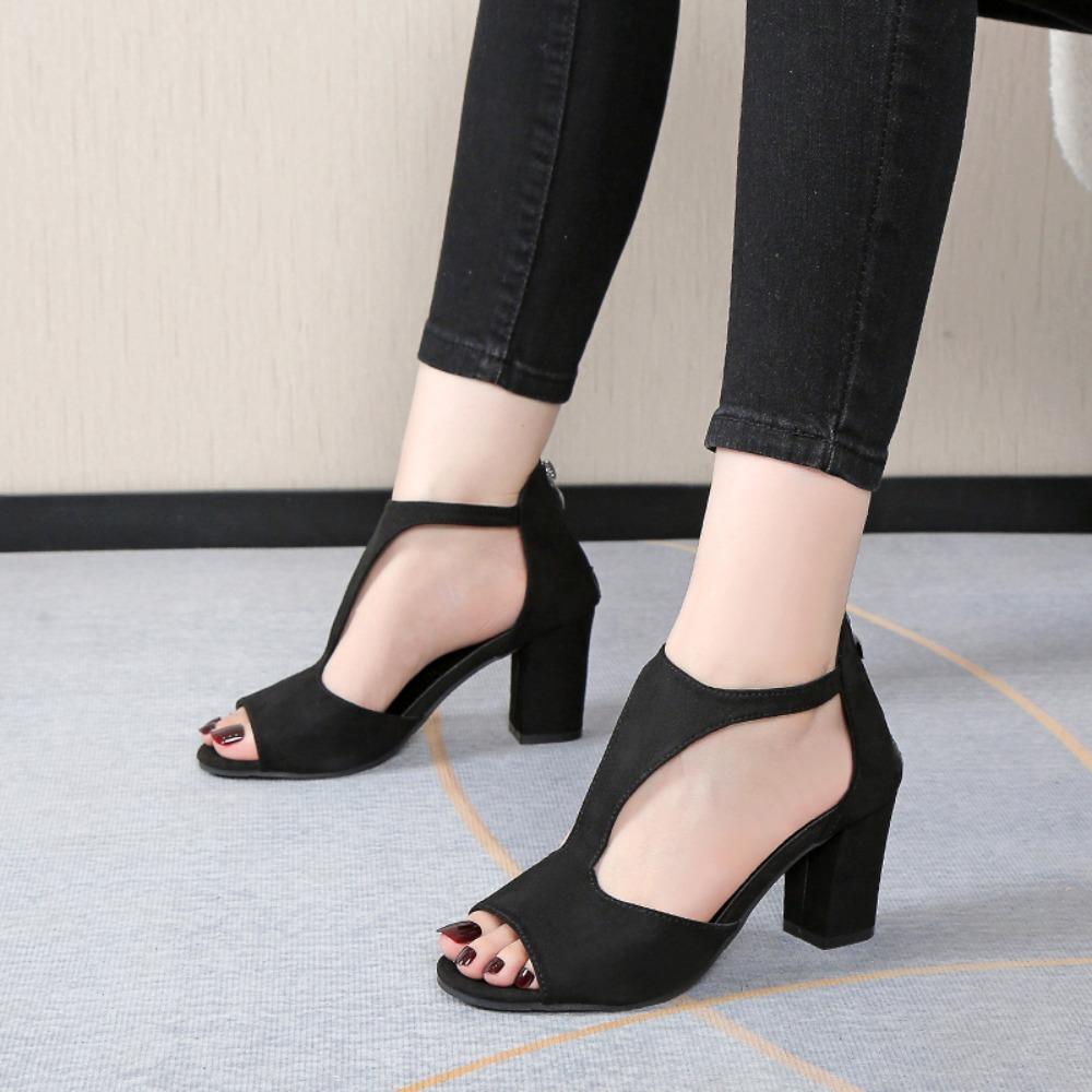 Летние новые женские босоножки с рыбьим ртом, молния сзади, сексуальные, однотонные, удобные, на высоком каблуке, одинарные, размер 35-44