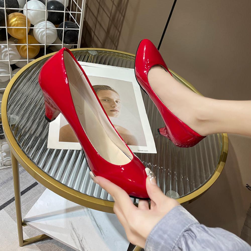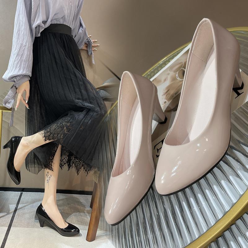 Четыре сезона, туфли на высоком каблуке, женские модные туфли на низком каблуке с острым носком, повседневная кожаная обувь толщиной 5 см, рабочий низкий каблук
