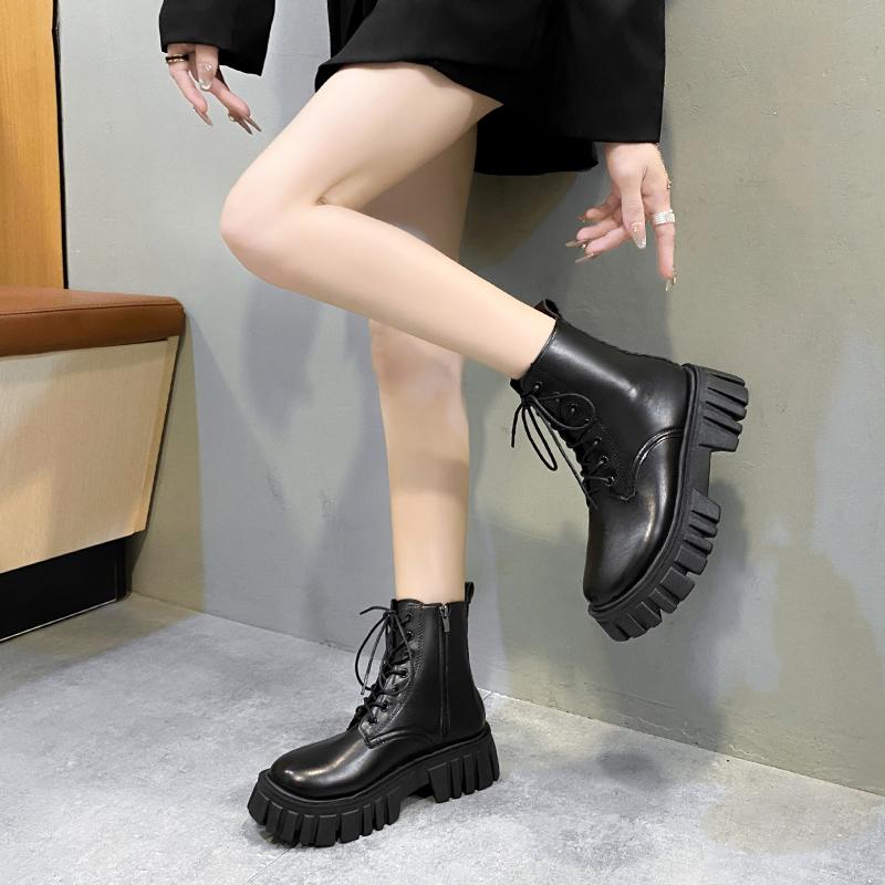 Простые и Модные Женские Ботильоны с Коротким Голенищем 2024 Осень-Зима Новые Повседневные и Универсальные Ботинки на Толстой Подошве для Женщин