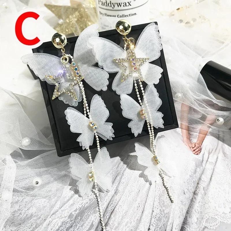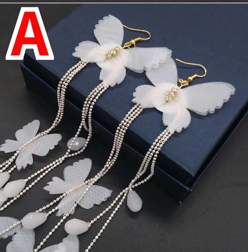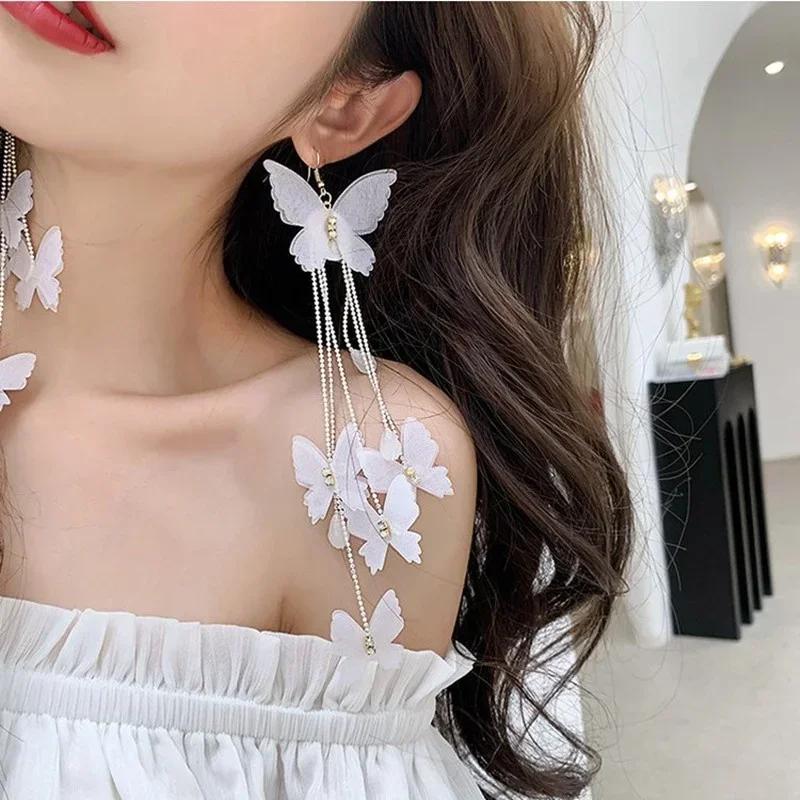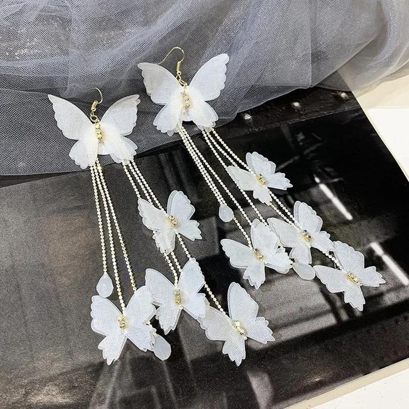 Модные ювелирные изделия Длинные белые серьги-кисточки в виде бабочек Богемные праздничные подарки для вечеринок Аксессуары для женщин