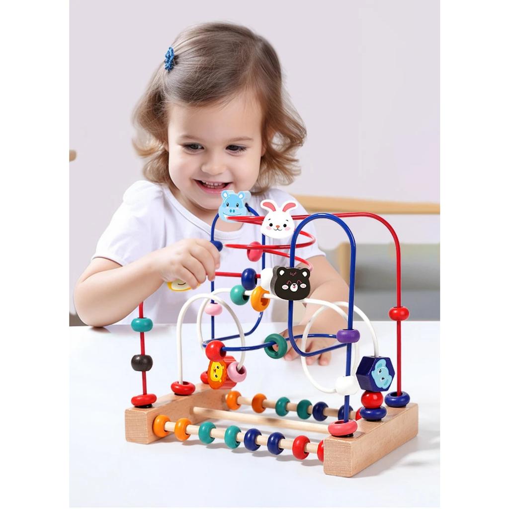 Деревянные игрушки Лабиринт из бисера Красочные животные Фрукты Формы Обучающие счетные обучающие круглые игрушки Детские классические подарки для малышей