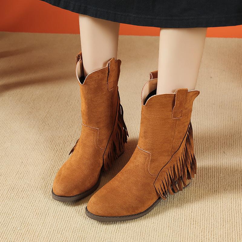 2024 осень-зима ретро женская обувь матовые бархатные сапоги вестерн сапоги Мартин с бахромой женские трендовые зарубежные торговые женские сапоги