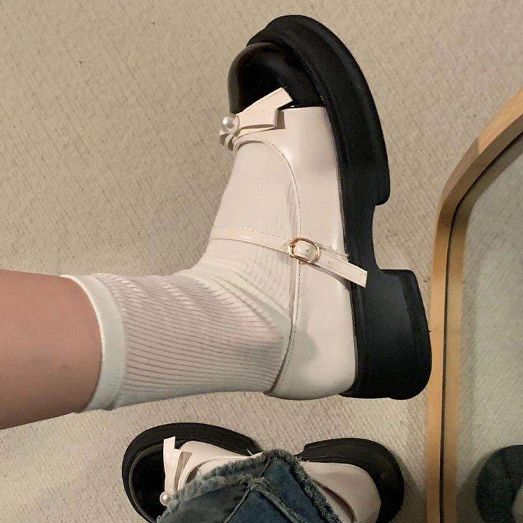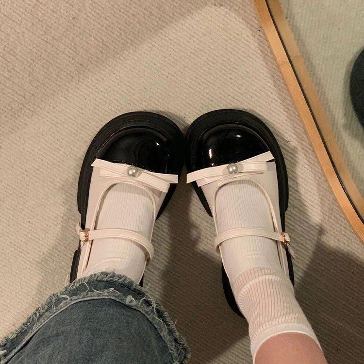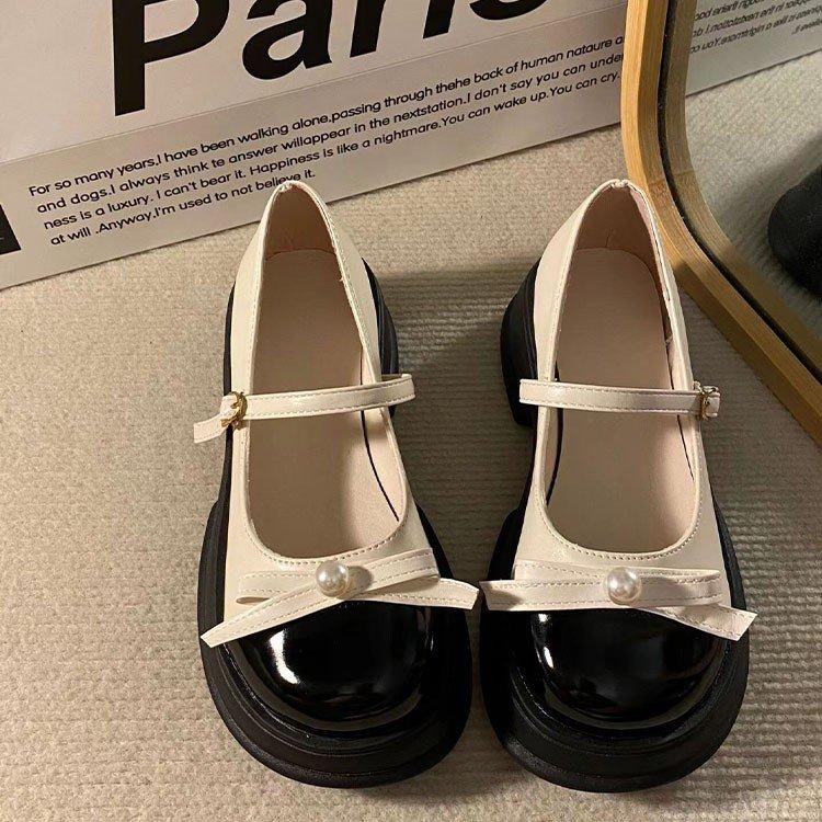 Черные туфли Мэри Джейн из маленькой кожи, французская ниша, весна 2025, новая модель на толстой подошве, в стиле маленького аромата, туфли-лодочки с бантом