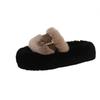 Модернизированная версия женских тапочек Мао Мао, осенне-зимняя новинка, интернет-знаменитость, мягкая подошва, пряжка на ремне, одно слово, тапочки Мао, домашние тапочки