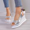 Босоножки на танкетке женские летние 2024 года, новая женская верхняя одежда, босоножки с застежкой-рыбьим ртом, односложные босоножки с пряжкой, женская обувь большого размера
