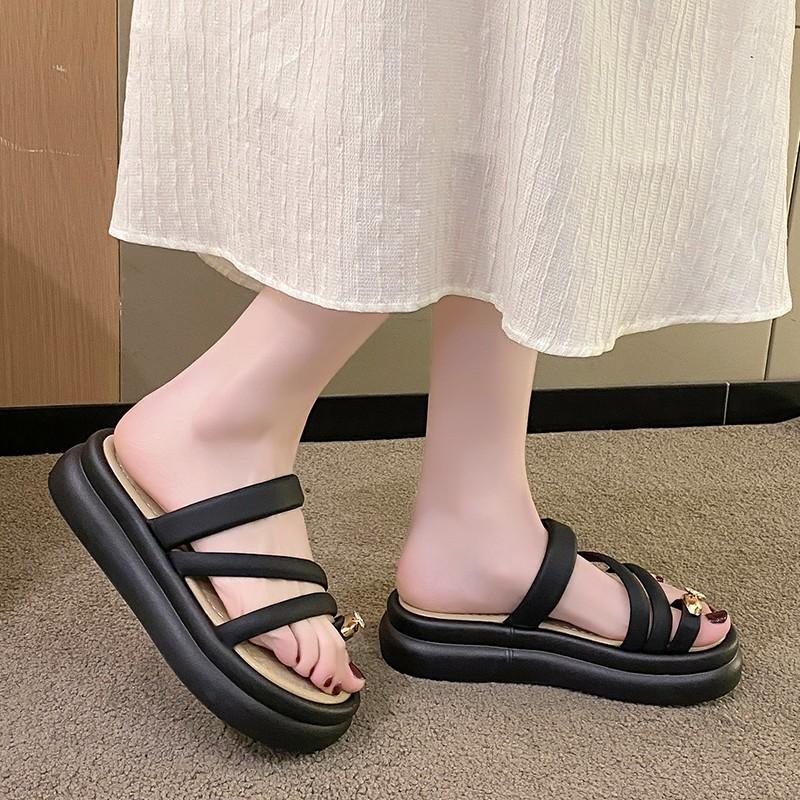 2025 Step on shit мягкие кожаные сандалии женские летние тапочки-бублики на толстой подошве носок с юбкой римские пляжные туфли
