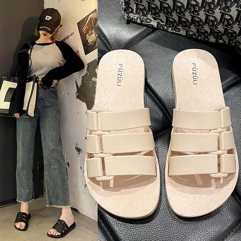 Летние шлепанцы женские для улицы 2025 новая мода шлепанцы на плоской подошве с пряжкой через подъем студенческие приморские повседневные пляжные туфли женские
