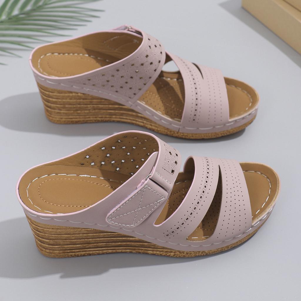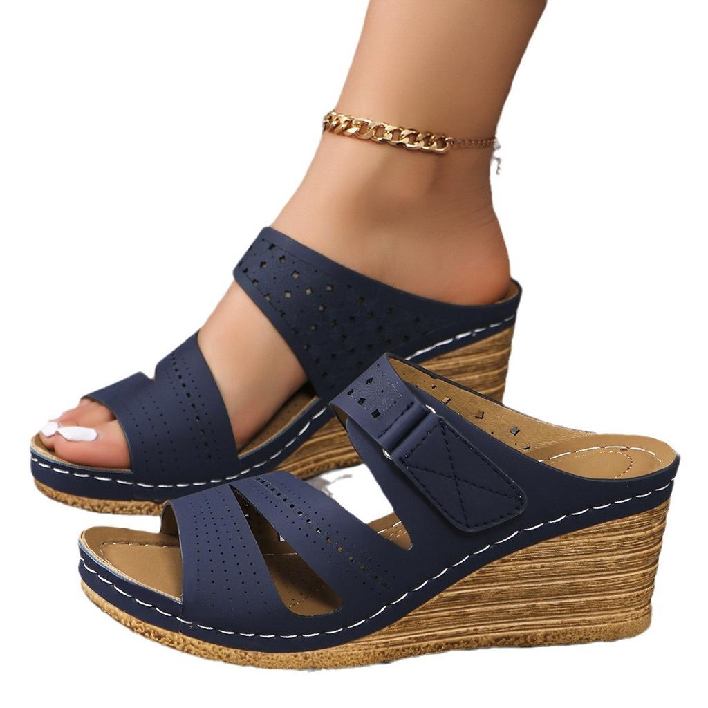 2024 новые импортные женские тапочки на толстой танкетке с толстой подошвой, большие размеры, одно слово с повседневными тапочками с рыбьим ртом, женские тапочки на танкетке