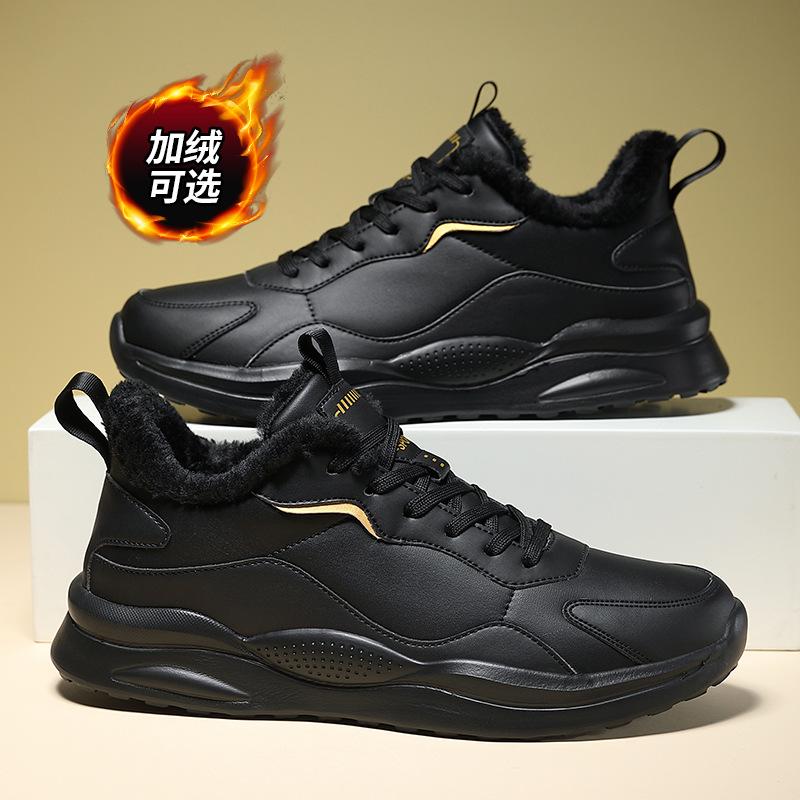 2025 новые мужские кожаные кроссовки, зимние бархатные теплые кроссовки, хлопковые кроссовки большого размера