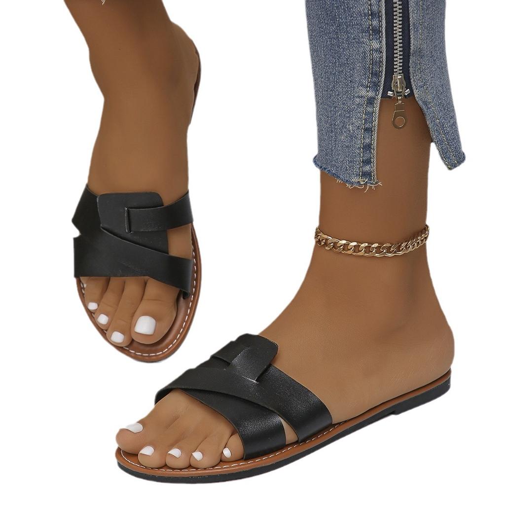 2024 летние новые тапочки женские импортные торговые большие размеры плоская подошва низкий каблук простые повседневные пляжные классные тапочки женские