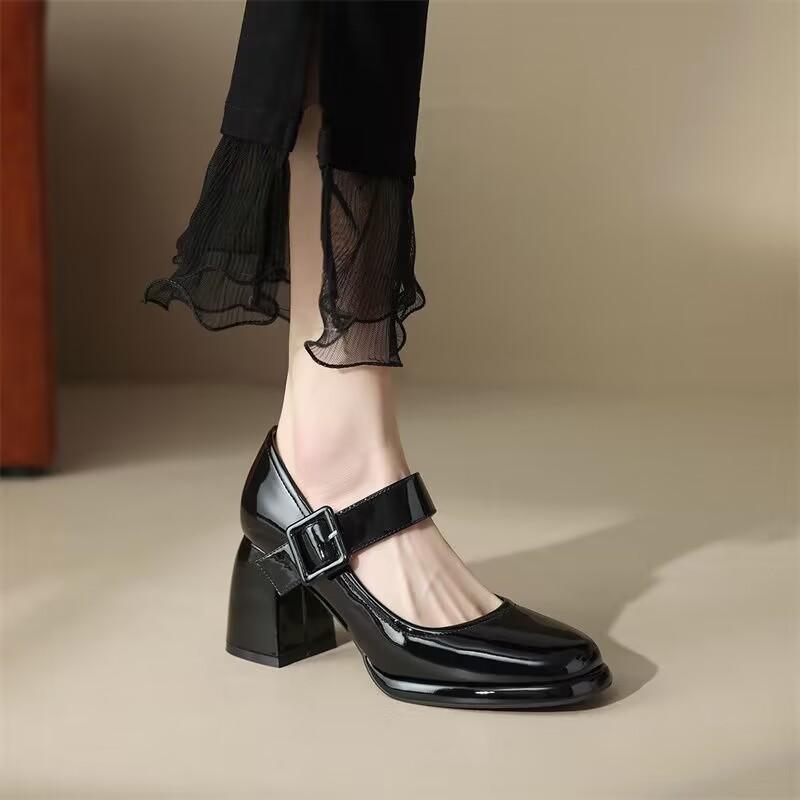 Туфли Мэри Джейн на высоком каблуке женские весна 2025 новые модные темпераментные туфли с круглым носком французские ретро милые туфли Мэри Джейн