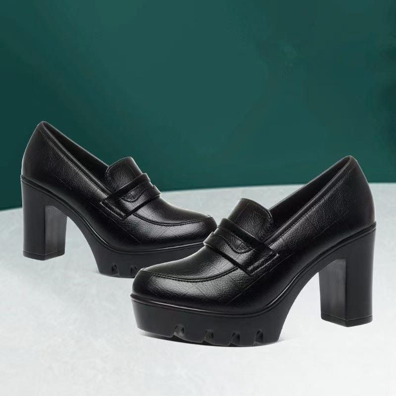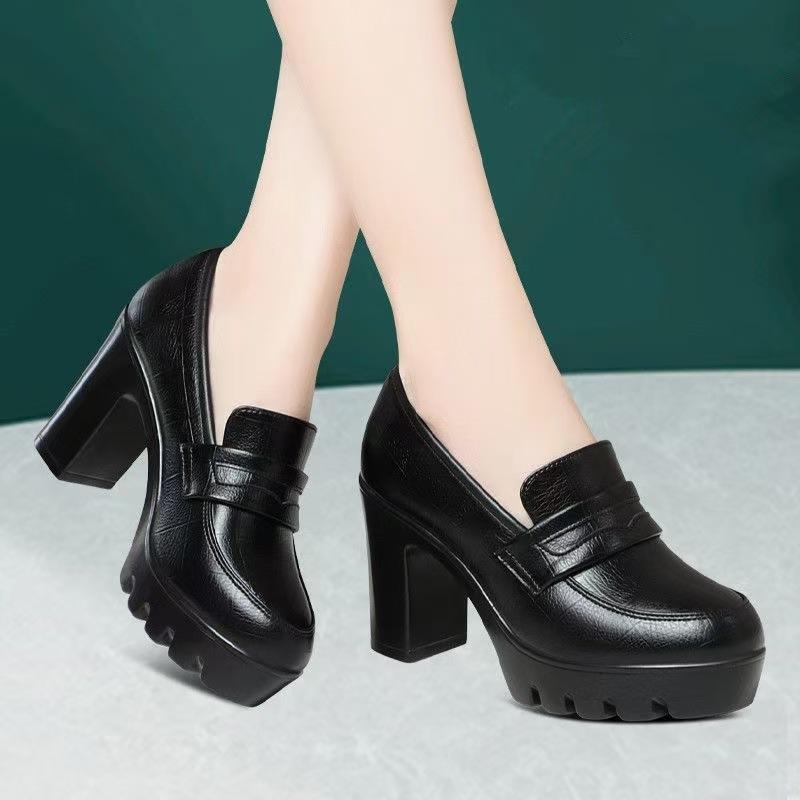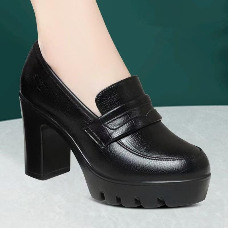 Обувь для подиума в стиле ципао среднего и пожилого возраста, водонепроницаемая, каблук 8 см, женская обувь на высоком каблуке, толстая подошва, мягкая кожа, круглая головка
