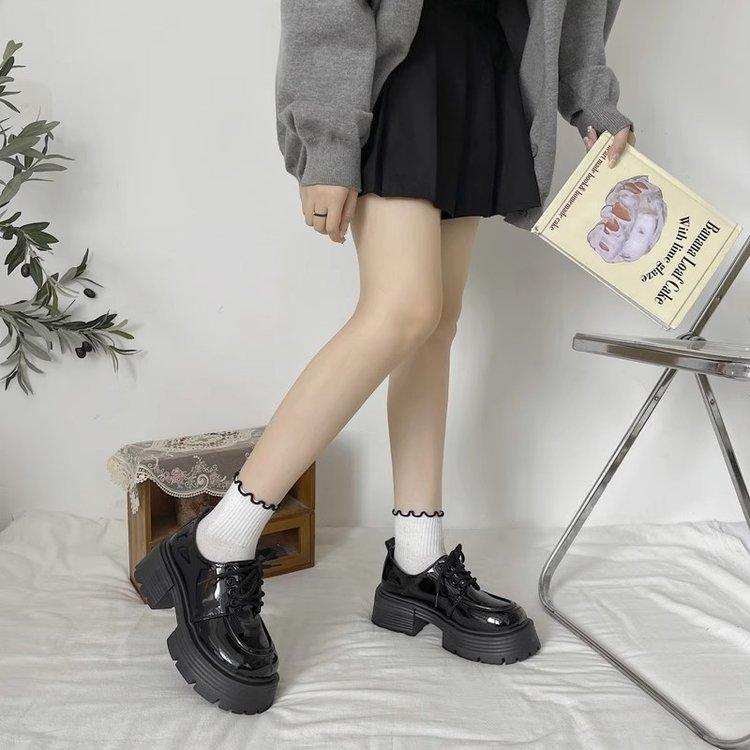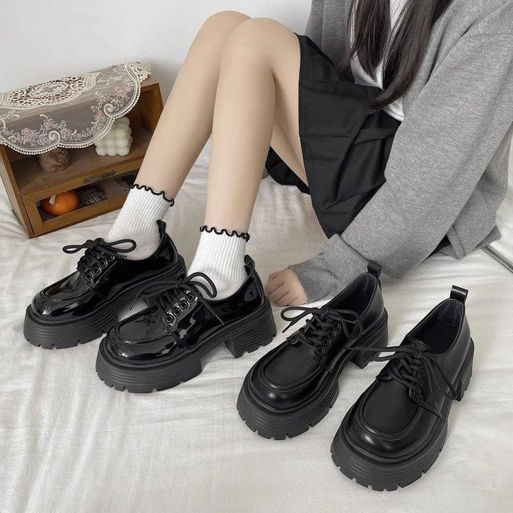 Туфли женские кожаные на платформе, маффины, весна 2025, новые ретро-туфли в британском стиле в японском стиле jk на высоком толстом каблуке