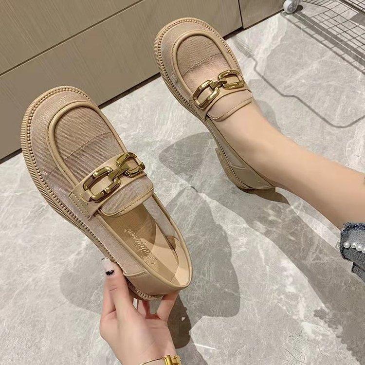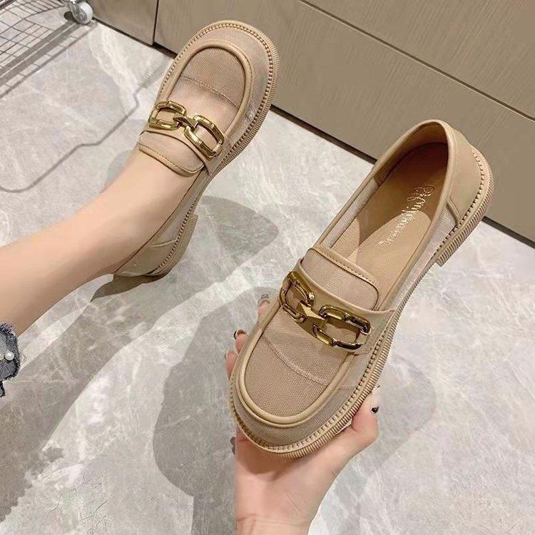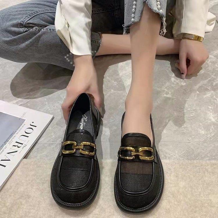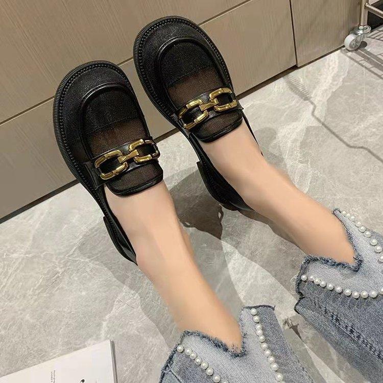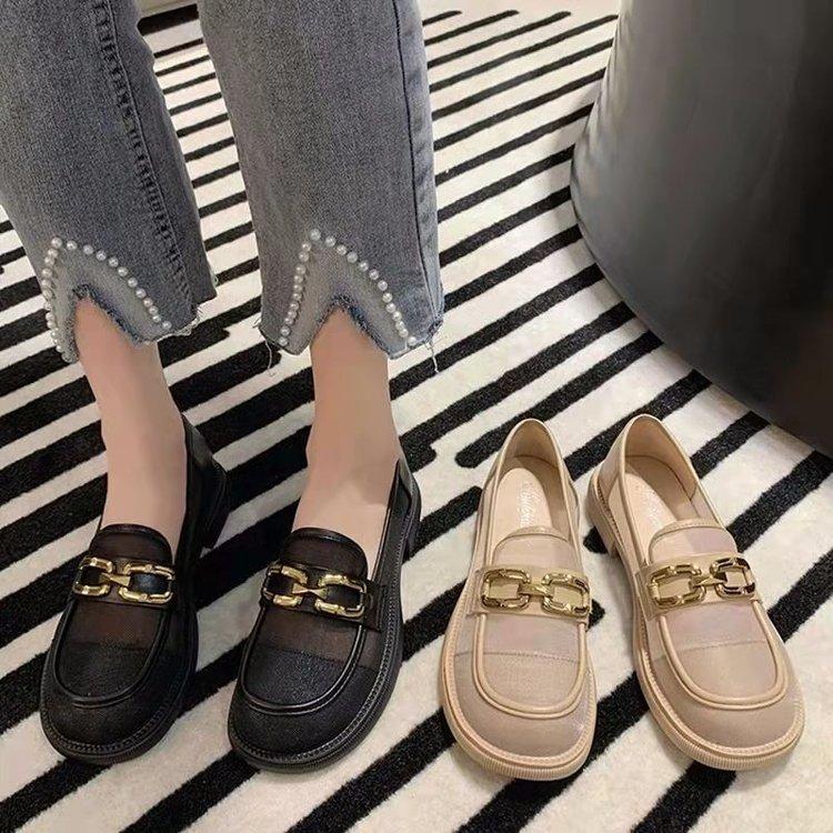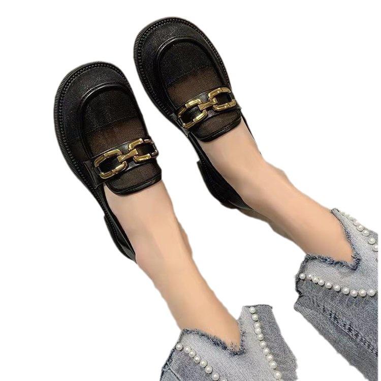 Сетчатые мокасины женские летние 2024 года, новые туфли JK на толстой подошве с круглым носком и толстым каблуком, сетчатые полые дышащие одинарные туфли
