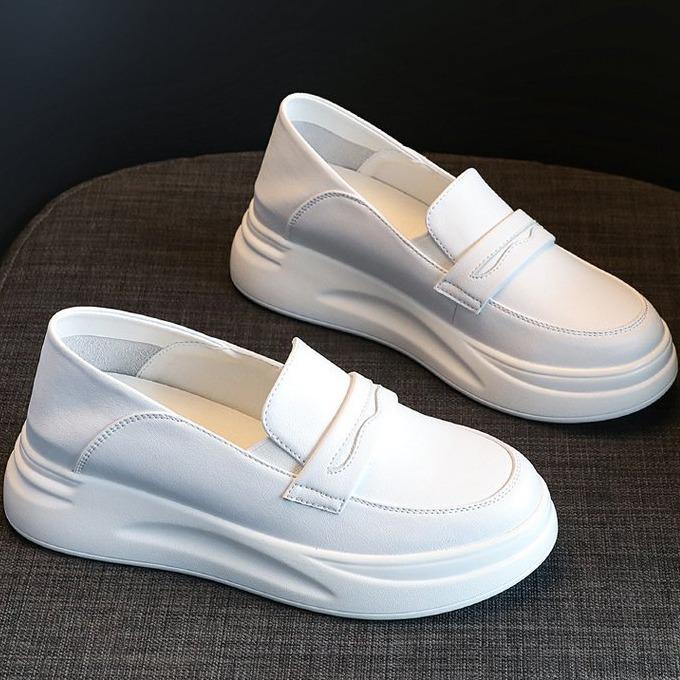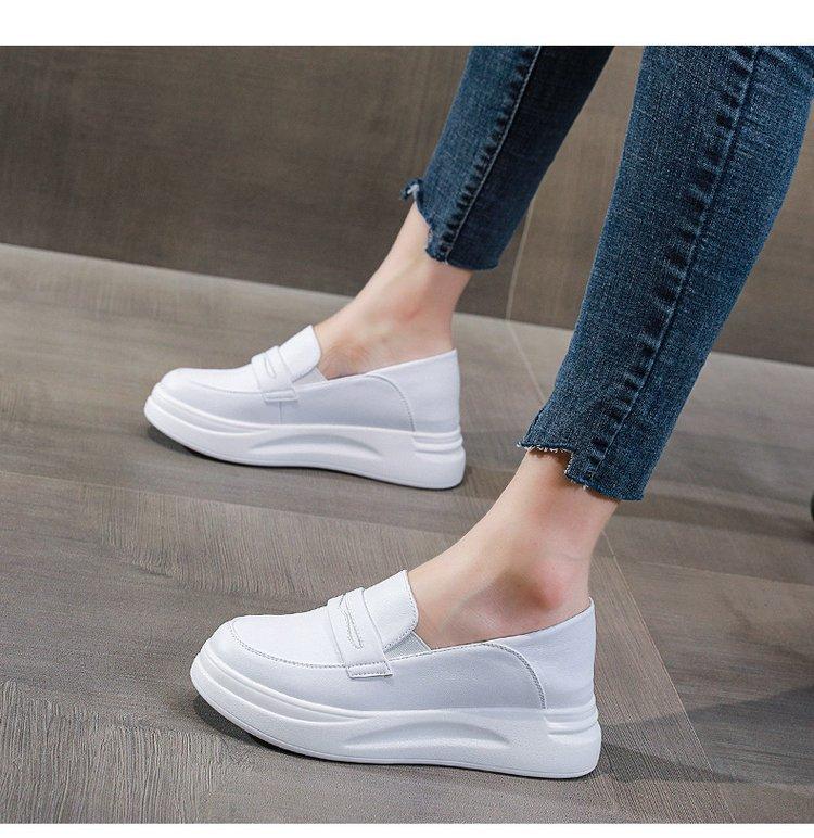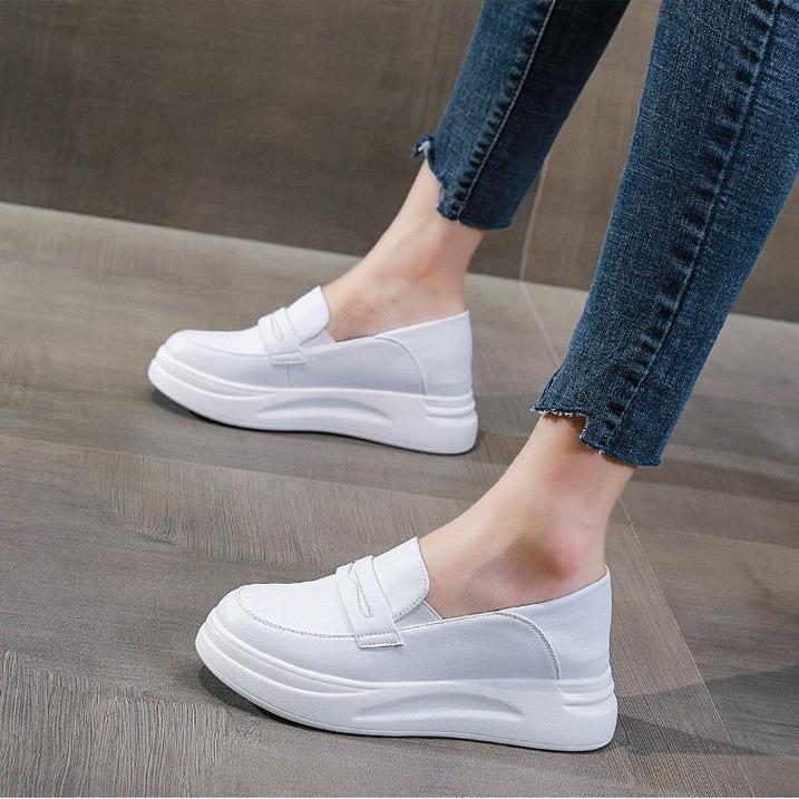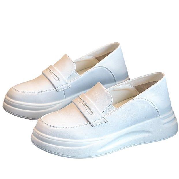 Туфли-лоферы женские 2024 осень амортизация мягкая кожа толстая подошва внутренняя высота увеличивается одна педаль две носить белые кожаные туфли одиночные туфли