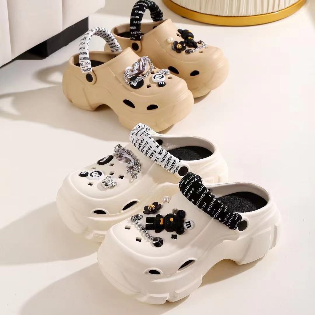 Туфли с дырочками на толстой подошве для женщин, которые можно носить летом, корейская версия моды для увеличения высоты пляжной обуви на берегу моря, сумка-голова, два вида одежды, классная sl
