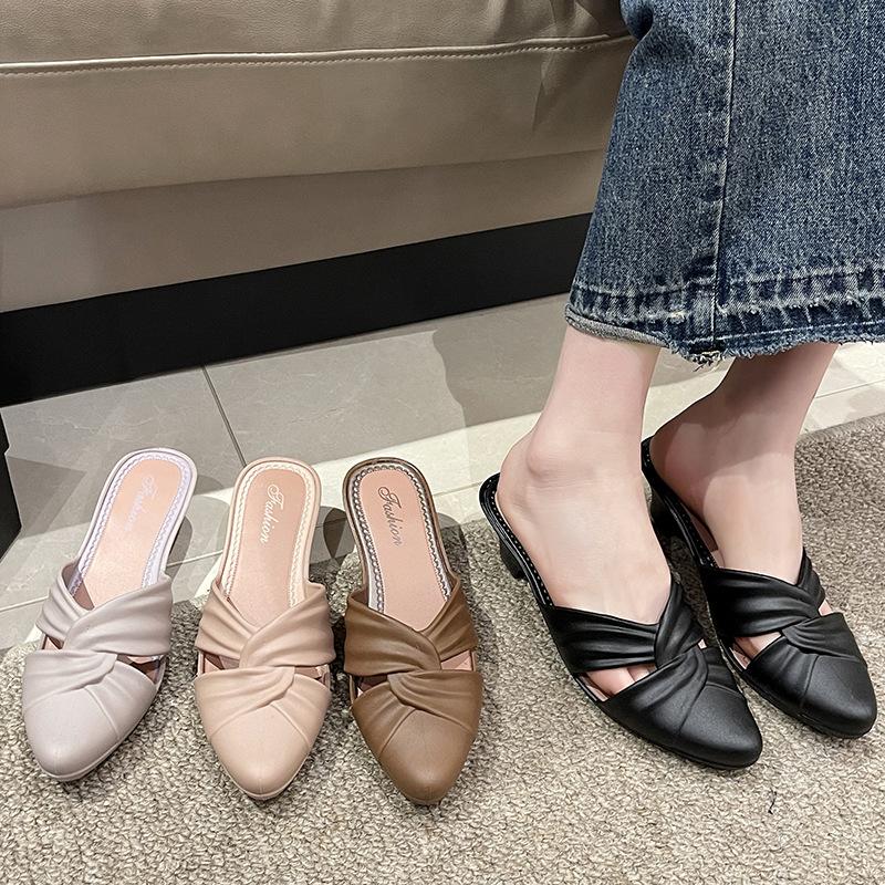 Летние новые женские тапочки на высоком каблуке, модные женские повседневные тапочки с острым носком, пляжные тапочки для студенток, которые можно носить на улице — купить товар онлайн с бесплатной доставкой по всему миру!
