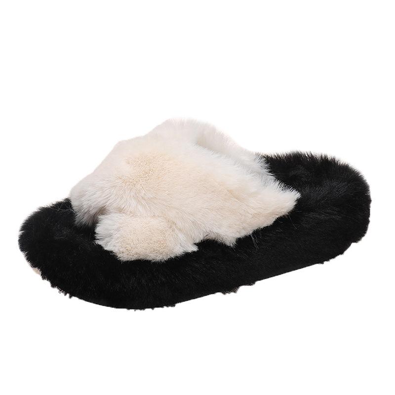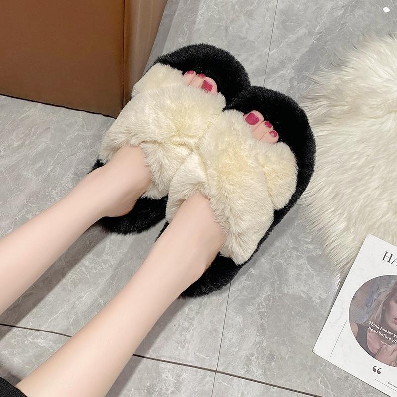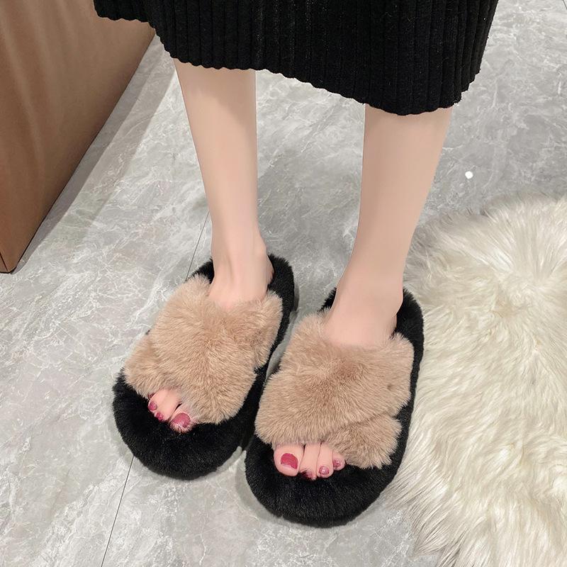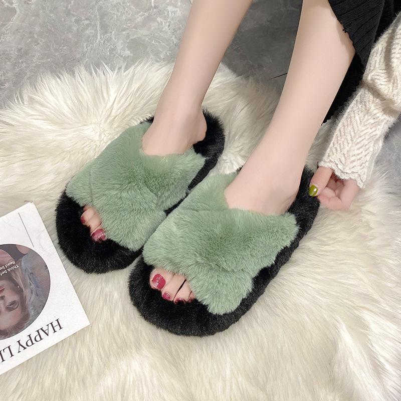 Мохнатые тапочки женские на толстой подошве 2025 года осень-зима новые женские туфли больших размеров модные и удобные домашние мохнатые тапочки
