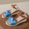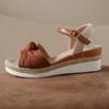 Летние новые босоножки на покатом каблуке с бантом, европейская и американская мода, импортные босоножки больших размеров, сандалии с пряжкой в виде рыбьего рта и подошвой из пеньковой веревки